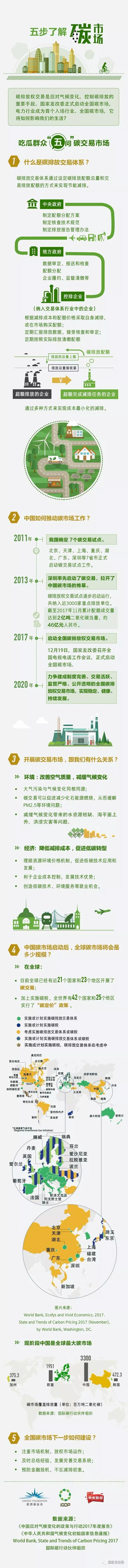 12月19日,國家發(fā)改委副主任張勇在全國碳排放交易體系啟動工作新聞發(fā)布會上表示,經(jīng)國務(wù)院同意,國家發(fā)改委印發(fā)了《全國碳排放權(quán)交易市場建設(shè)方案(發(fā)電行業(yè))》,標(biāo)志著中國全國碳排放交易體系已完成總體設(shè)計并正式啟動。下面,通過一張圖《五步了解碳市場》。