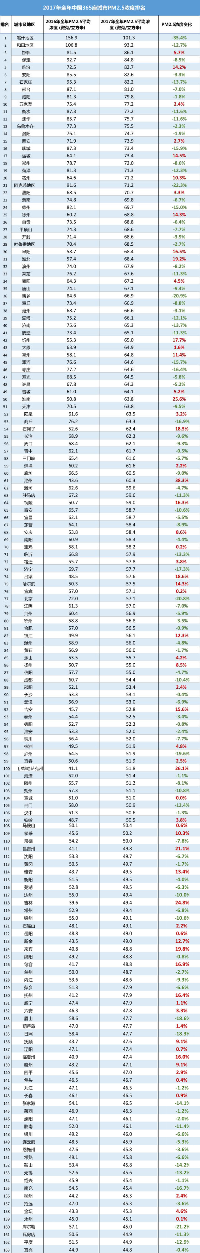 根據環保部公開數據,我們對全國365座城市的年平均PM2.5數據做了一個排名。