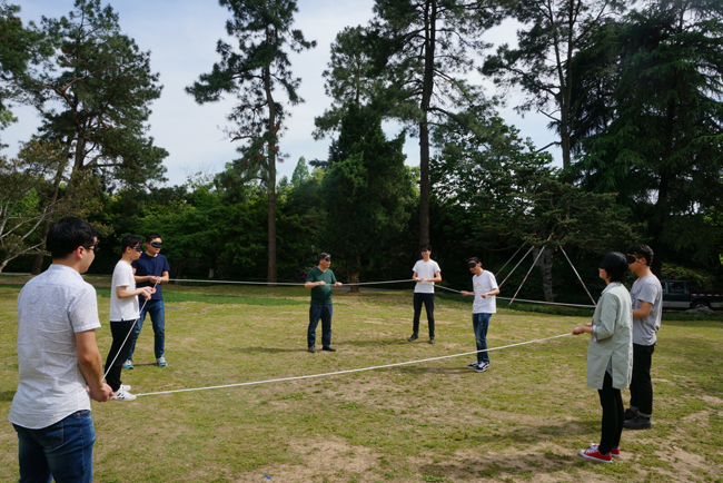 松鼠和大樹考查的是大家的應變能力。有的同事一聽到口令就迅速行動起來,有的稍作猶豫就被別人搶了位置。心動不如行動哦,童鞋。