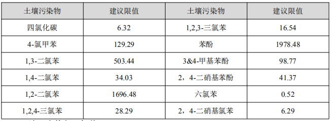 場地土壤污染物修復建議目標值(mg/kg) ![]() 地下水修復目標值 ![]() 土壤修復范圍及工程量: