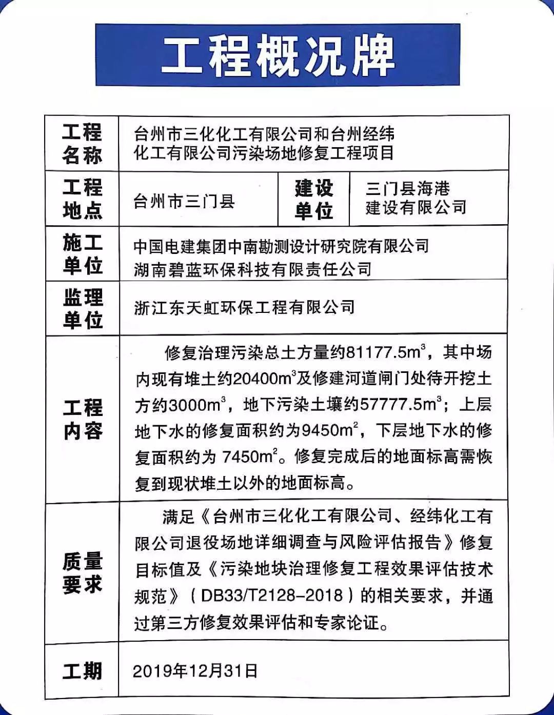 根據(jù)《臺州市三化化工有限公司和臺州經緯化工有限公司污染場地修復工程項目招標文件》,本項目修復總土方量為 81177.5m3,包括 1#~13#地塊的污染土方量 57777.5m3,場地區(qū)域內污染堆土約 20400m3以及擬修建河道閘門處待開挖約 3000m3土方量。 ![]() 項目的進展: